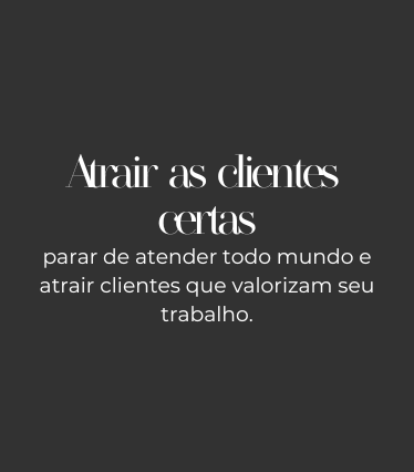 para uma agenda tranquila, valorizada, clientes fiéis e promotoras do meu trabalho, com muito mais realização e menos esforço.